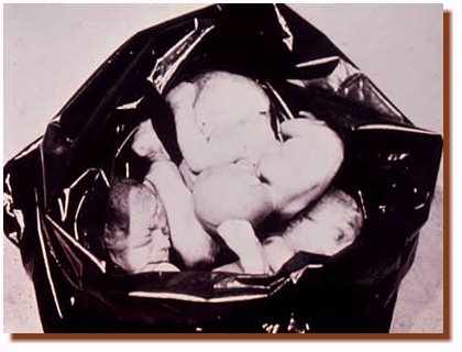 A fotografia abaixo mostra uma cesta de lixo de uma clínica de abortos